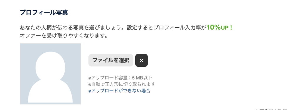 明るく清潔感のある写真を設定することで、企業からの閲覧率が向上します。